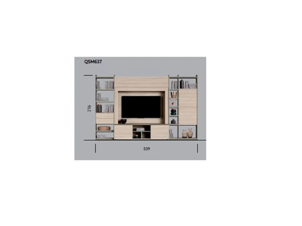- Maniglia con maniglia: La parete attrezzata Qsm 637 è dotata di una comoda maniglia, che facilita l’apertura e la chiusura dei vani, offrendo praticità e funzionalità.