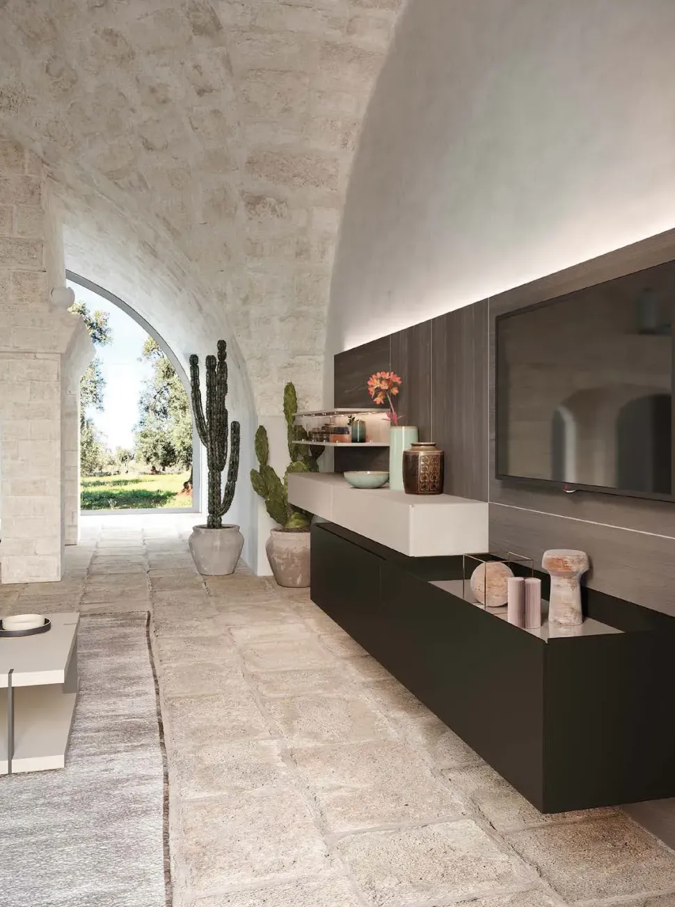 Forme decise e un design unico contraddistinguono questa composizione per la zona giorno, rendendola ideale per impreziosire uno spazio in stile design.