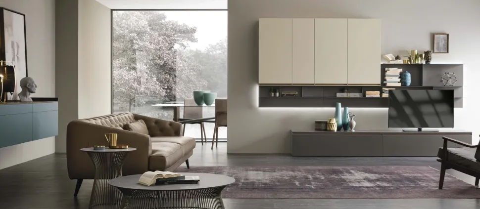 - Con il fine di poter risolvere diverse problematiche abitative, il marchio ha ideato una serie di arredi di varie tipologie per il soggiorno; il modello visibile in foto è un mobile a terra, plurifunzionale e ampio.
