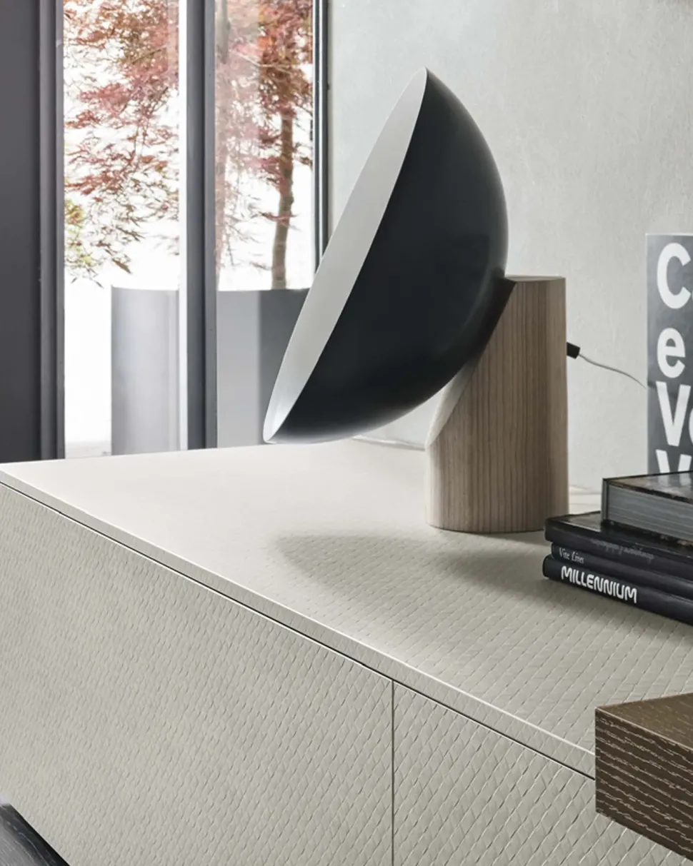 - Allo scopo di poter risolvere diverse esigenze abitative, il marchio ha ideato una collezione di arredi di varie tipologie per il living; il modello presente in foto è un mobile a terra, plurifunzionale e capiente.
