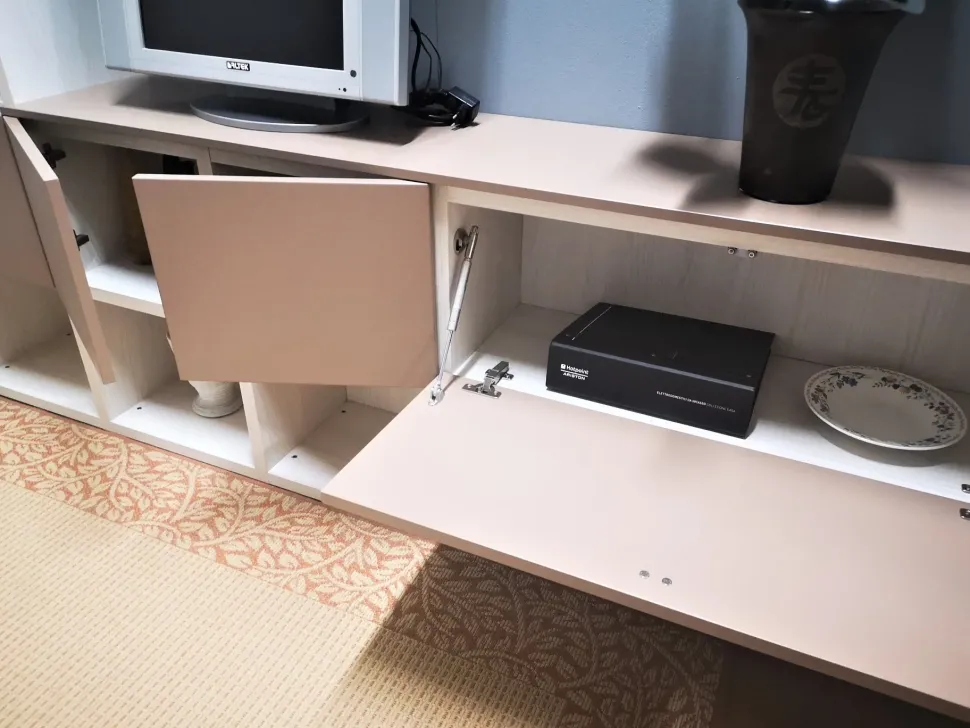 Ante e top in laccato opaco Avana, apertura Premi-apri.