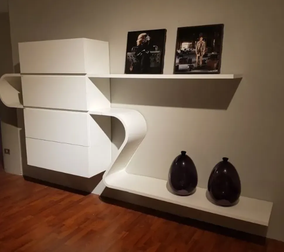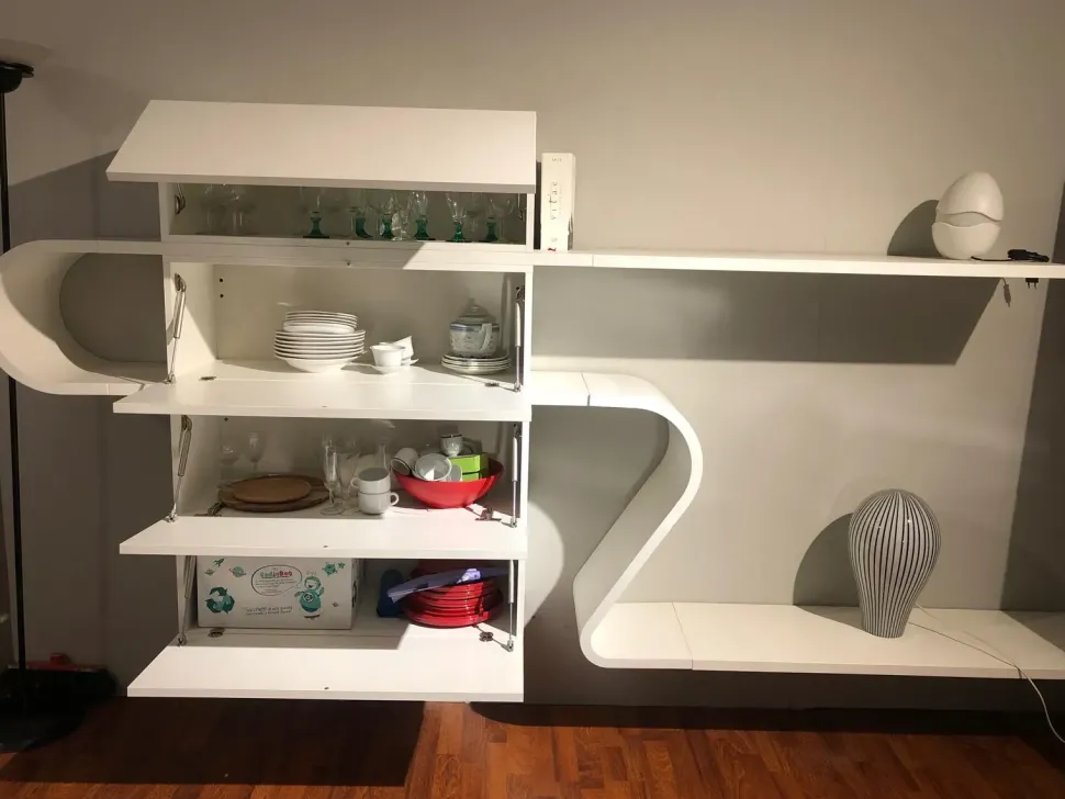 in pronta consegna visionabile presso il nostro show room parete giorno modello Wave finitura laccato bianco opaco con ante a ribalta