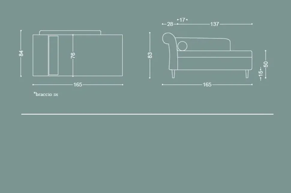 LARGHEZZA 84 CM PROFONDITA TOTALE 178 CM ALTEZZA PIEDINO 16 CM ALTEZZA DA TERRA FIN SOPRA SCHIENALE 76 CM ALTEZZA DA TERRA FIN SOPRA SEDUTA 44 CM