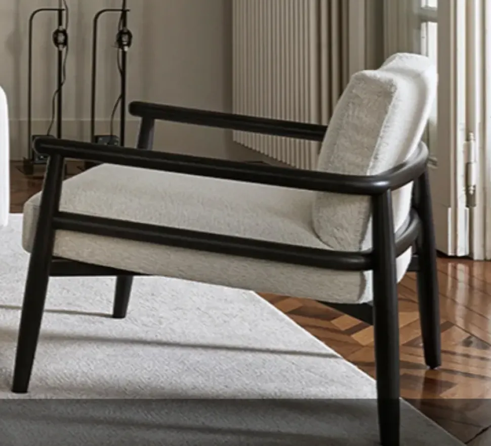 Teresa è una poltrona caratterizzata da linee essenziali che assumono forma e struttura attraverso il calore e la matericità del massello di rovere, sapientemente lavorato. Il comfort e l’estetica differiscono per la versione “soft”, più morbida e accogliente, rivestita con tessuti e pelli di collezione. È disponibile anche un accessorio tasca portaoggetti.