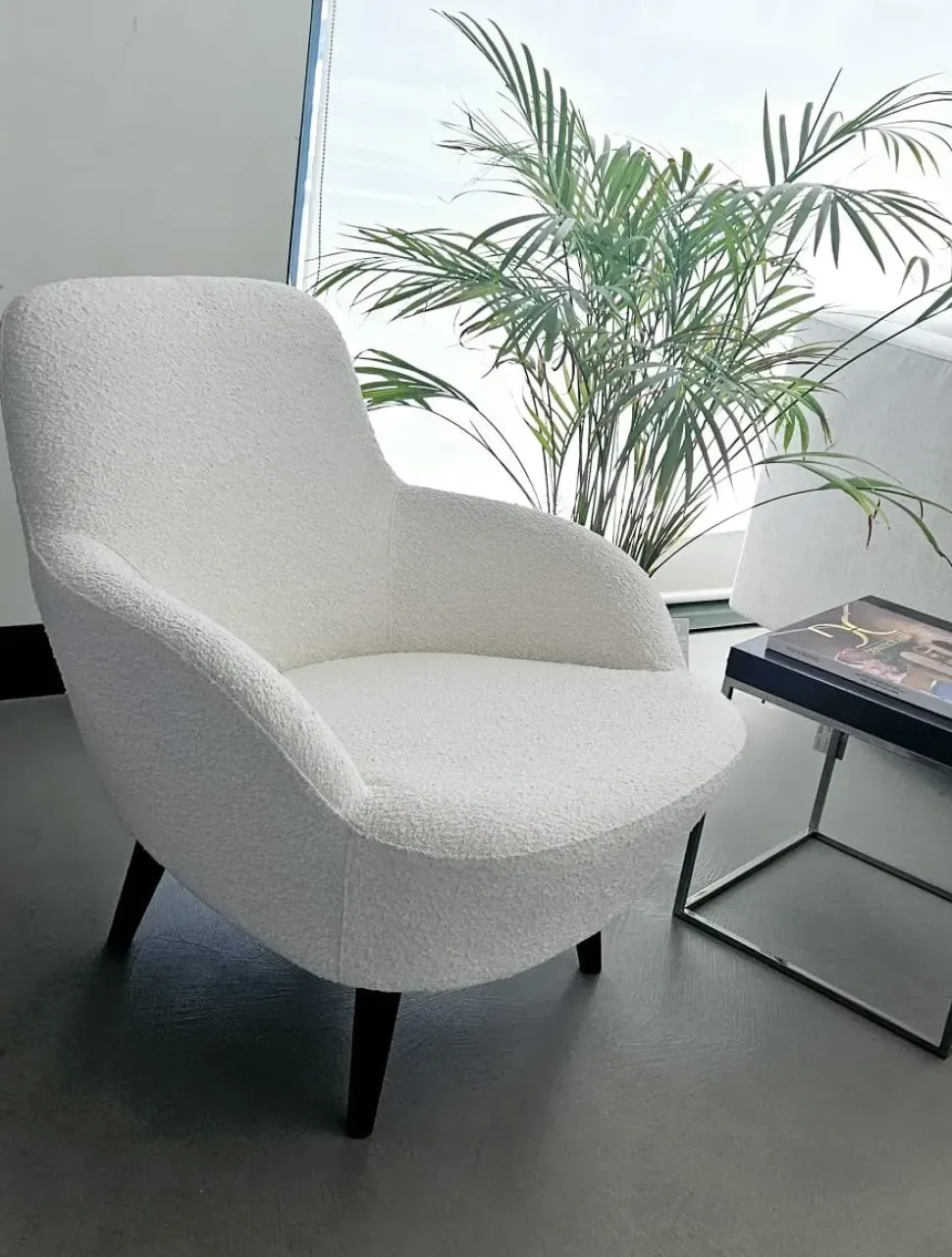 Poltroncina cm. l.68* p.83 * h.75 in tessuto antimacchia bianco. Trasporto escluso isole e autoscala. ARTICOLO DI ESPOSIZIONE.