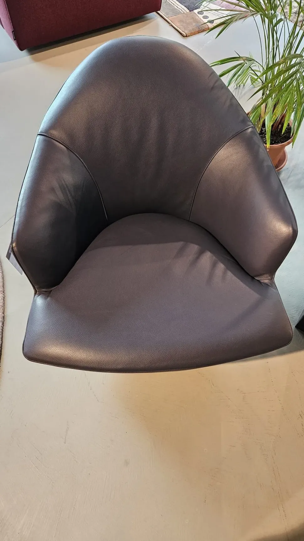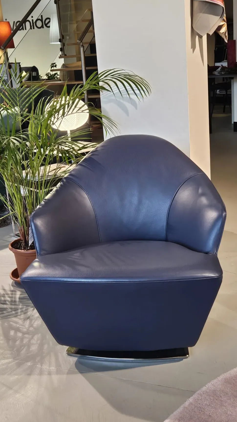 Poltrona girevole in pelle blu cm.72*80*h.71. Trasporto escluso isole e autoscala. ARTICOLO DI ESPOSIZIONE