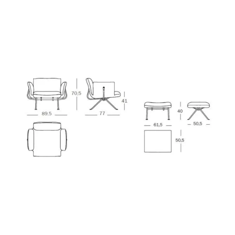 Dimensioni Poltrona con pouf Magis | OFFICINA + OTTOMANA