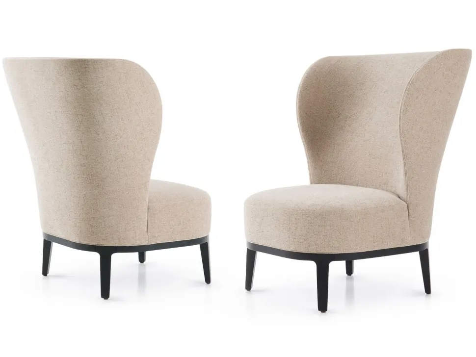poltrona bergère con schienale alto e con ali laterali dallo stile elegante e senza tempo