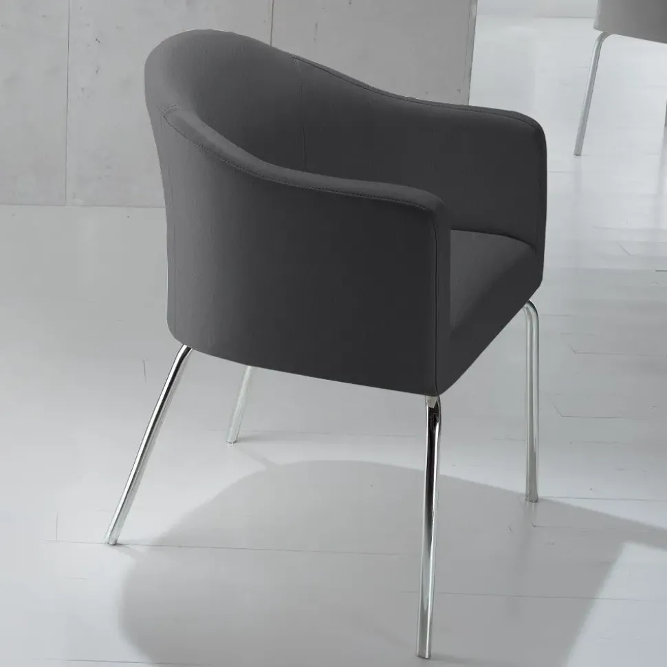 Moon ha una struttura minimal in acciaio cromato ed una seduta estremamente comoda in ecopelle. Una sedia imbottita molto accogliente con la base in cromato, questa poltrona regalerà un pizzico di calore e di stile in più al vostro ambiente.