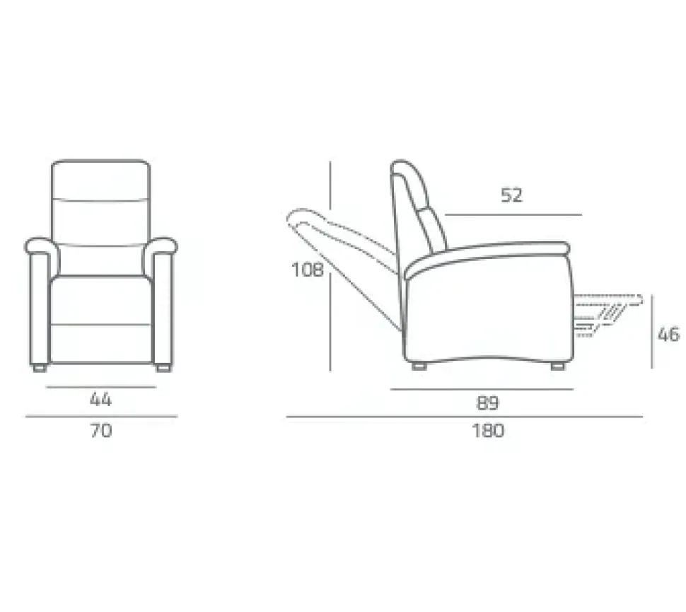 - La poltrona relax nella fotografia va da 176 a 200 cm in lunghezza: non dimenticare di valutare le misure dei tuoi mobili e oggetti accessori se vuoi completare un living operativo e pratico.