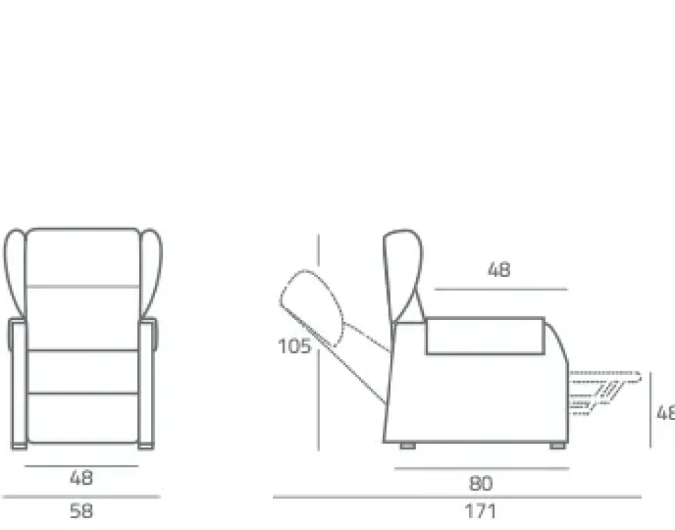 - La poltrona relax in foto va da 151 a 175 cm in lunghezza: non tralasciare di valutare le dimensioni dei tuoi mobili e complementi se vuoi completare un soggiorno pratico e operativo.
