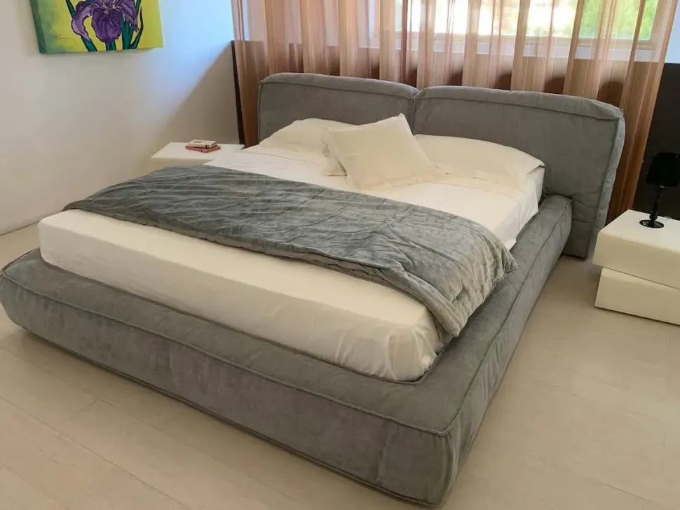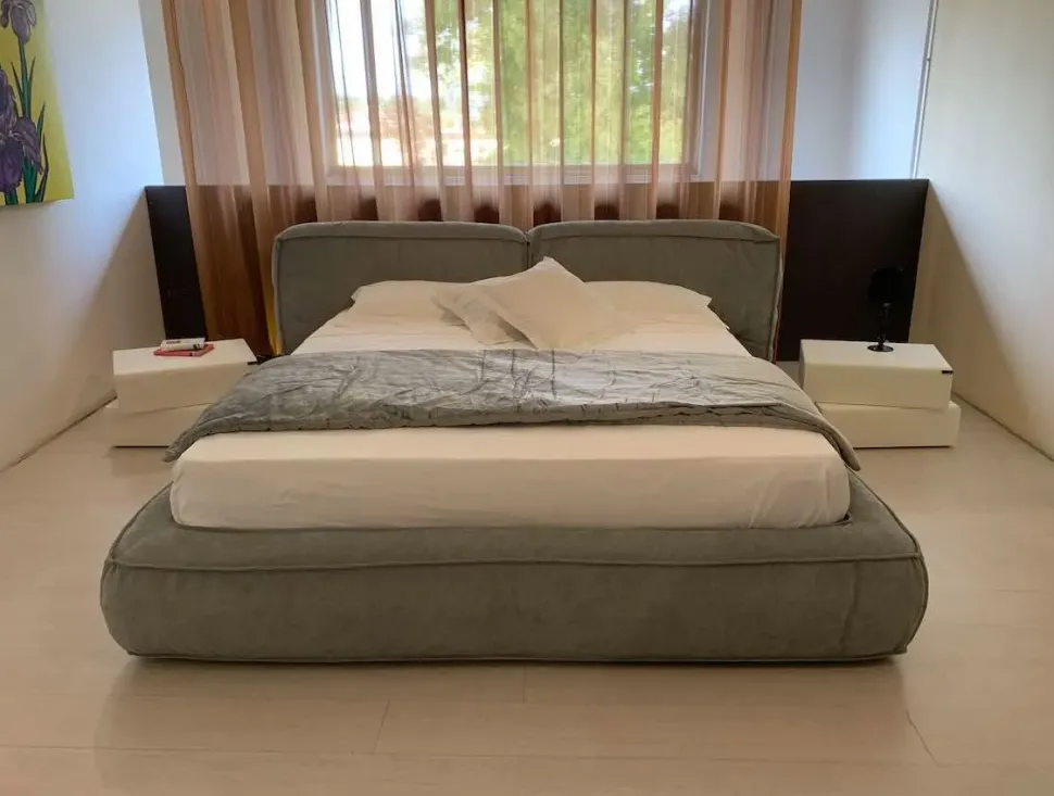 LETTO BONALDO MODELLO FLUFF OPEN IN OFFERTA OUTLET Il letto Fluff con contenitore di Bonaldo è ottimo per chi ricerca la morbidezza e il comfort. Esso è ispirato al ripieno del sandwich “Fluffernutter”, prelibatezza americana a base di marshmallow e burro d’arachidi. Dal soffice design e dalle forme accoglienti Fluff è completamente sfoderabile. Il rivestimento è in Tessuto 8D60 colore grigio. La rete è a doghe con struttura in metallo 180×200. La struttura è in legno e conglomerato di legno, piastre angolari in metallo verniciato. Testata e giroletto presentano un’imbottitura in poliuretano espanso a varie densità e in misto piuma. I piedi sono rettangolari in legno verniciato opaco. Le dimensioni sono: L 250 (Testiera) 212 (Giroletto) P 250 H 90 CM – Rete cm 180×200. Siamo rivenditori Bonaldo a Pontelongo vicino a Padova, non esitate a contattarci per altre informazioni.