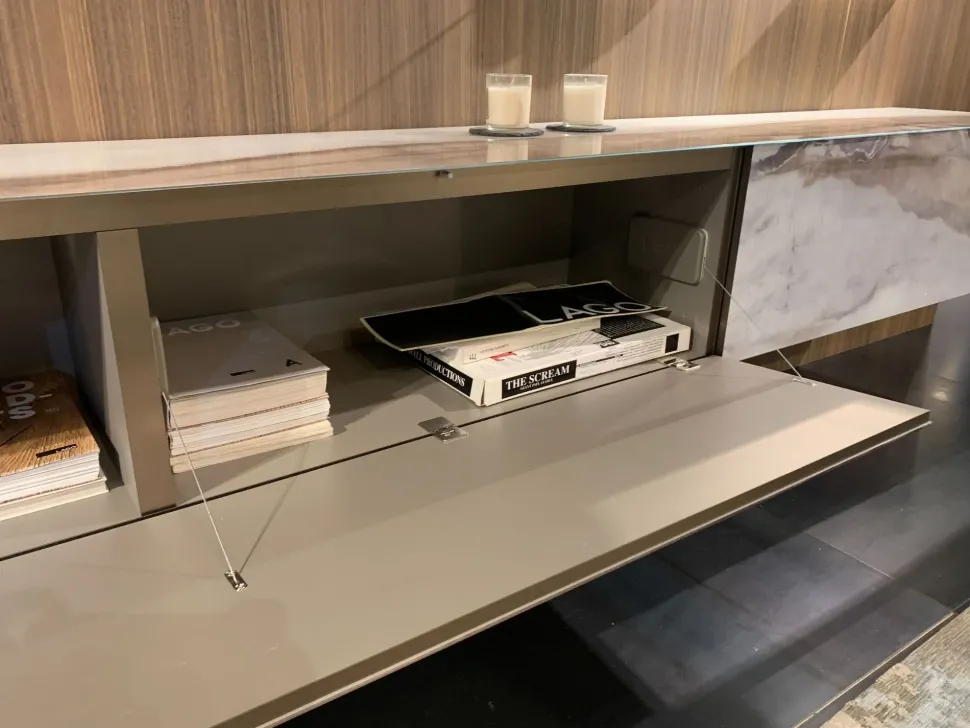 Per impreziosire un soggiorno moderni scegli una parete attrezzata che mantenga una certa coerenza stilistica, come questo modello Materia 36e8 + glass storage a prezzo ribassato.