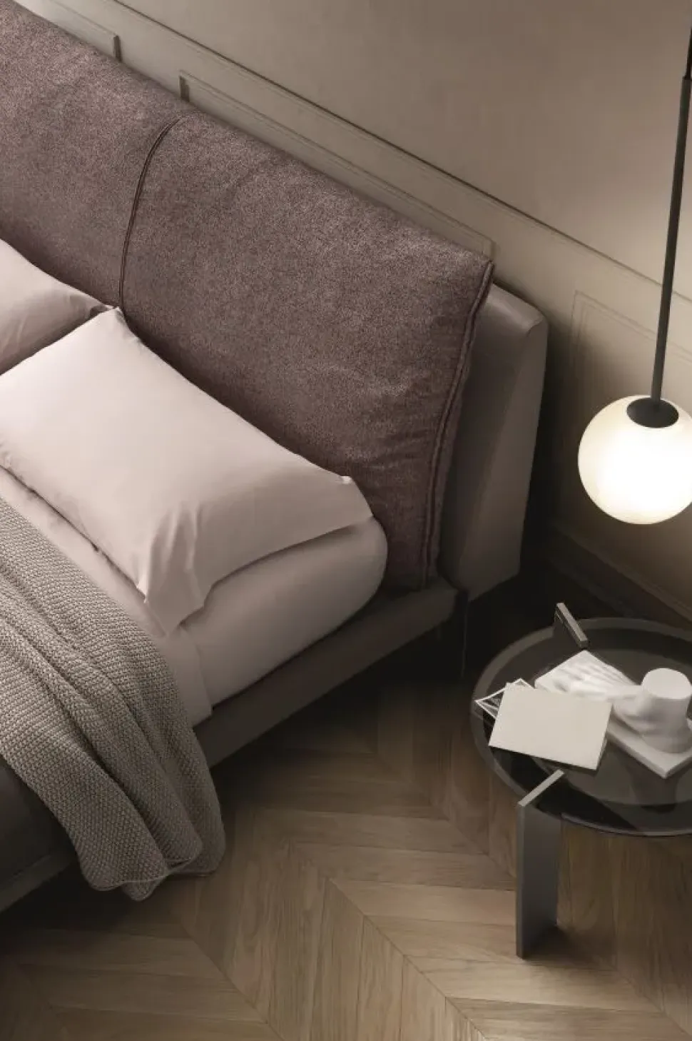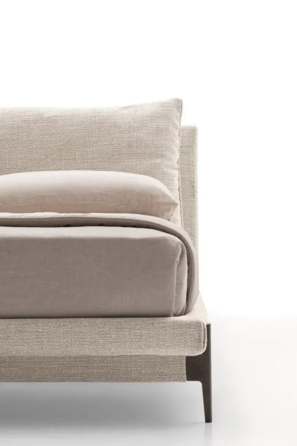 Kim letto riprende le eleganti e caratteristiche linee dell’omonimo divano, riconoscibili soprattutto nello schienale e nel giroletto. Una struttura equilibrata, con rivestimento in tessuto, pelle o mix, personalizzabile con una delle due versioni di piedino esclusivo: con o senza appoggio esterno.