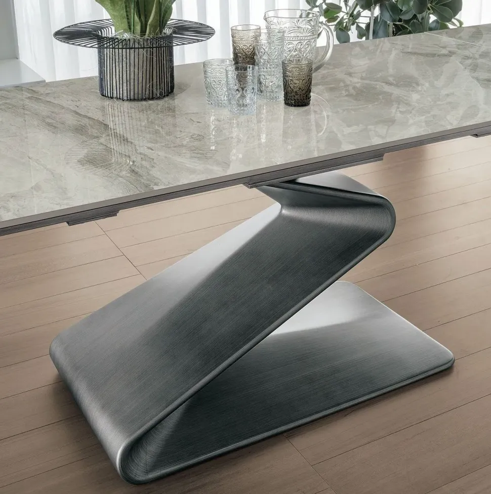 - L’offerta è per un tavolo rettangolare allungabile di cm 180×90 allungato cm 270 con piano in gres Calacatta opaco o Carrara lucido.