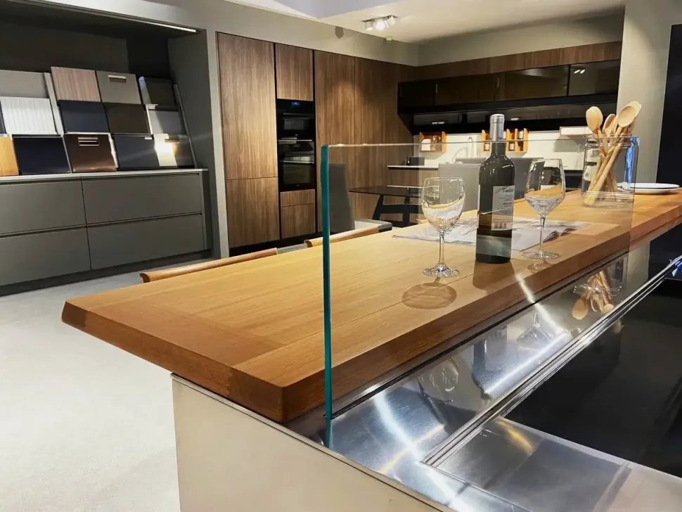 Arclinea ha scelto di realizzare in HPL la cucina Italia/convivium ora in offerta, materiale resistente nel tempo ma anche bello e raffinato.