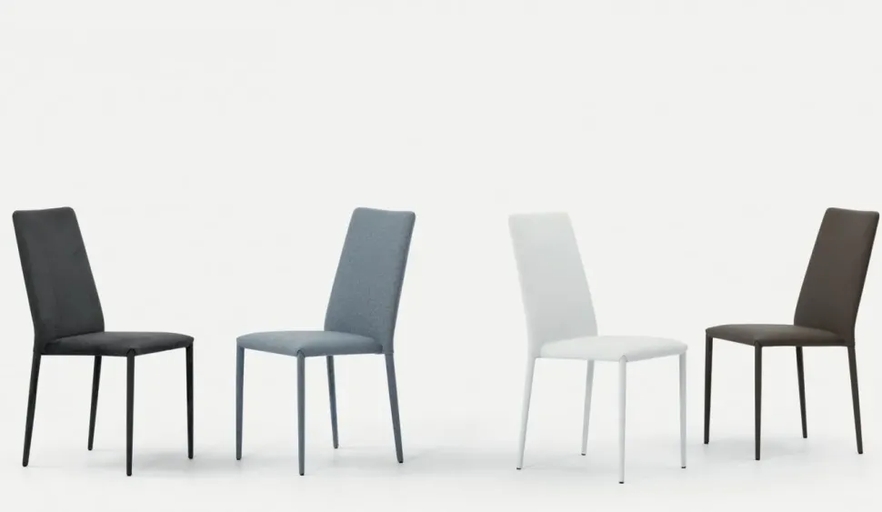 Funzionalità e stile: realizzata con materiali durevoli e resistenti, la sedia Malik di Bontempi è riconoscibile per la sua ecopelle e le sue linee essenziali o sinuose.