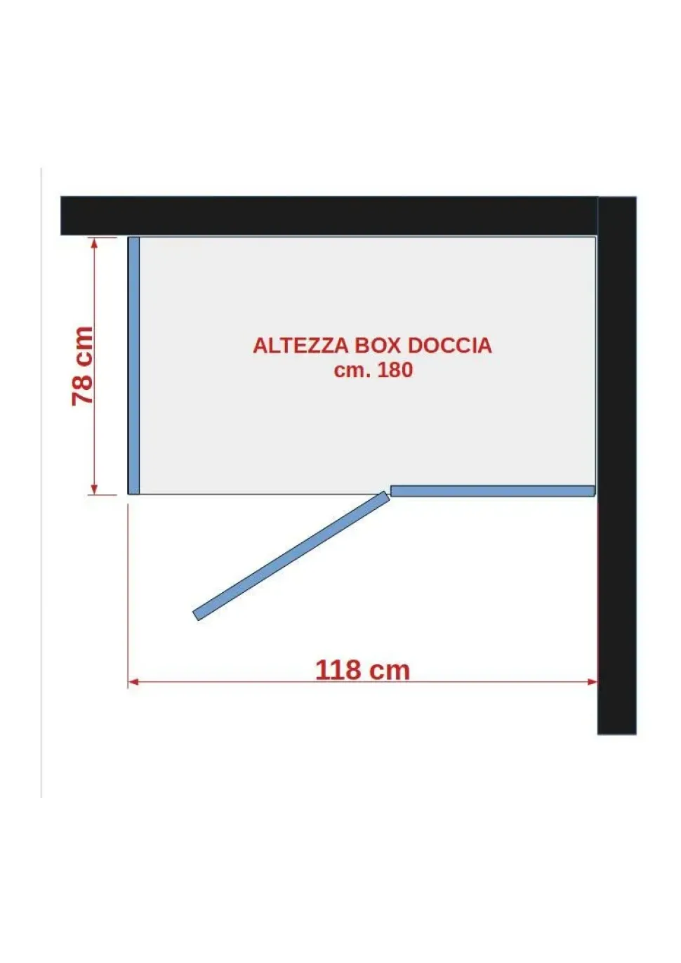 La misura del box doccia è di 118×78. L’altezza è di H.180.