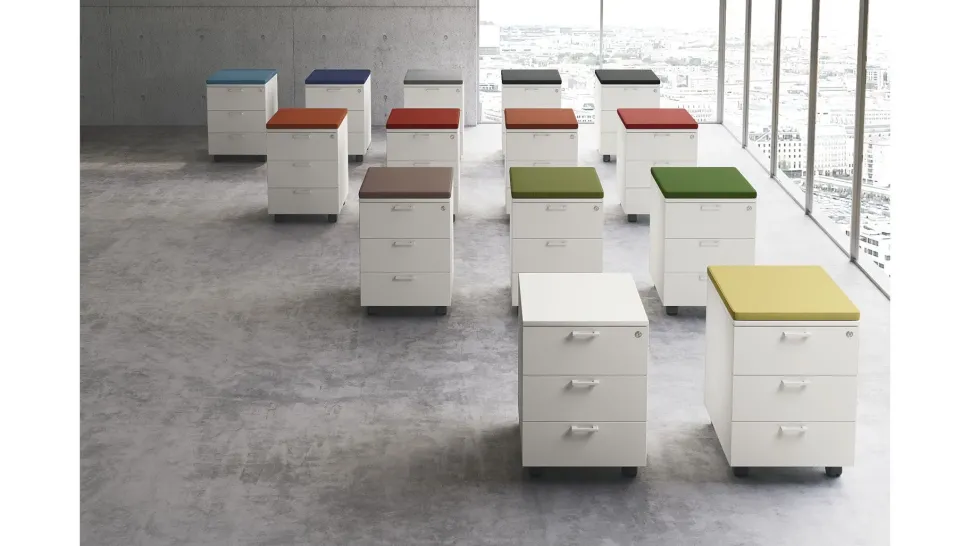 Possibilità di trasformare il mobile in sistema di appoggio Comby per scrivanie linea Oxi.