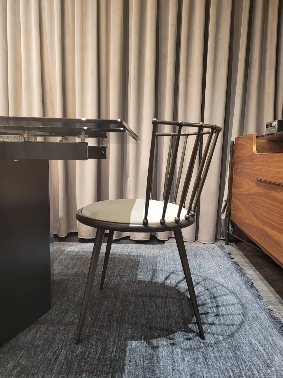 Aurora, sedia bacchettata che nasce da un’icona del design del passato, la sedia Windsor, reinterpretata in chiave attuale attraverso l’utilizzo del metallo.