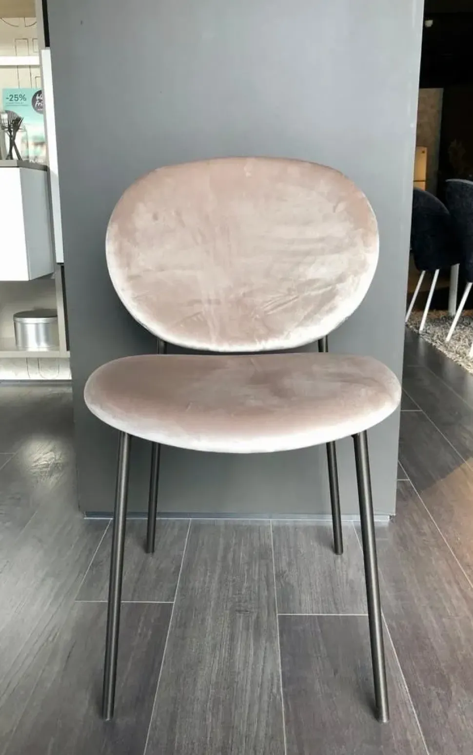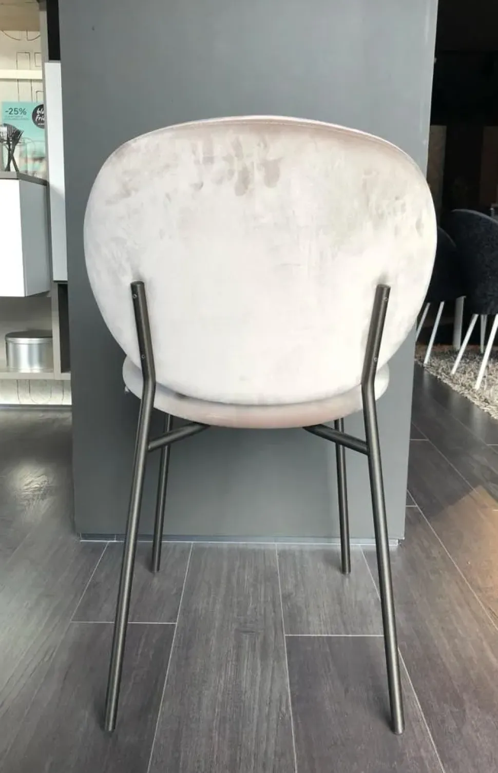 La struttura in metallo sostiene con eleganza e leggerezza sedile e schienale, caratterizzati da una silhouette tondeggiante ed accogliente.