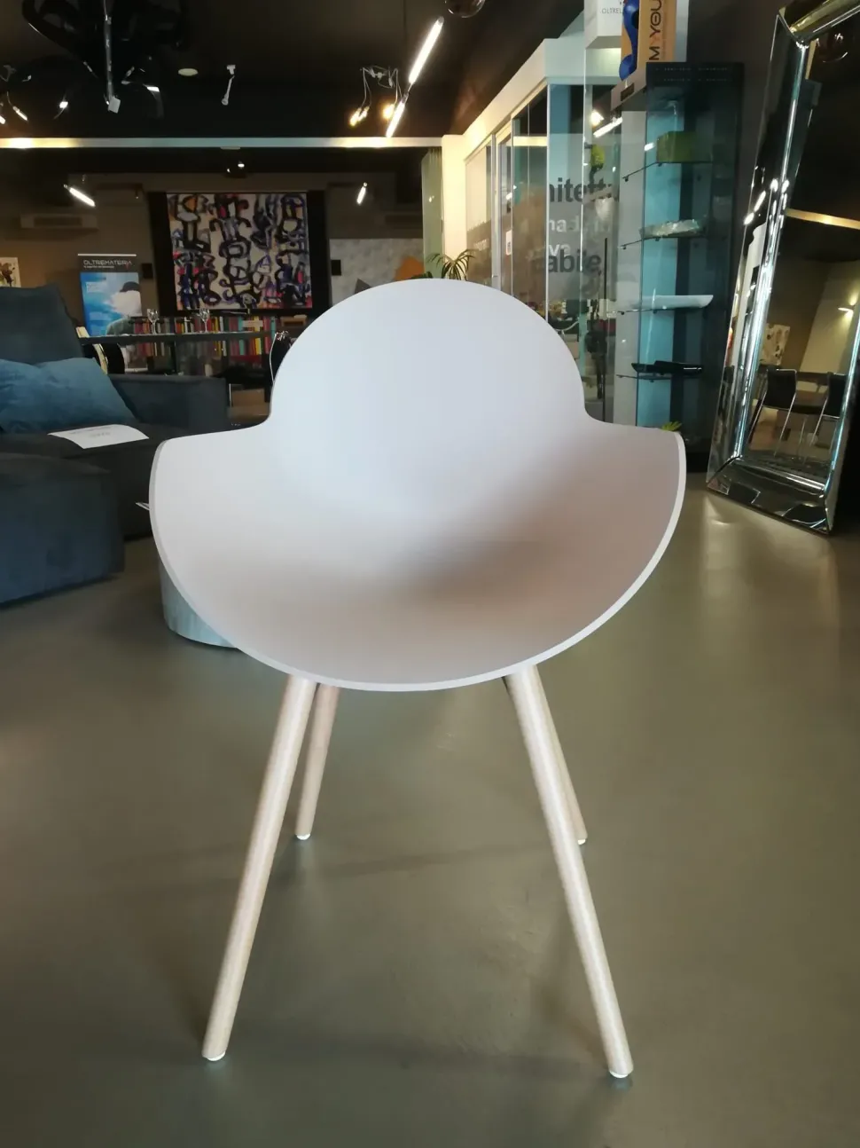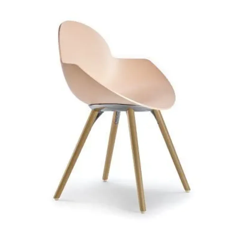 La seduta ha scocca in polipropilene, ottenuta da stampaggio ad iniezione ed è di colore Cipria. Perfetta sia in ambienti moderni che ricercati in cui dona sinuosità grazie alle sue linee