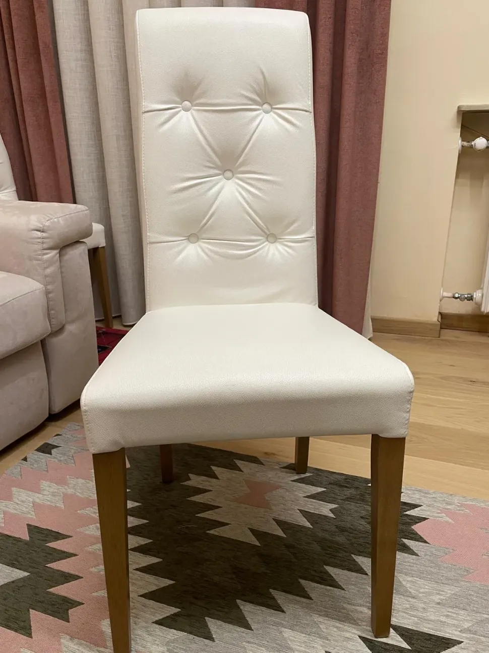 Sedia Bilia in legno rivestita in ecopelle non sfoderabile nei colori; bianco, avorio, grigio chiaro, tortora, rosso, antracite, testa di moro, e nero.