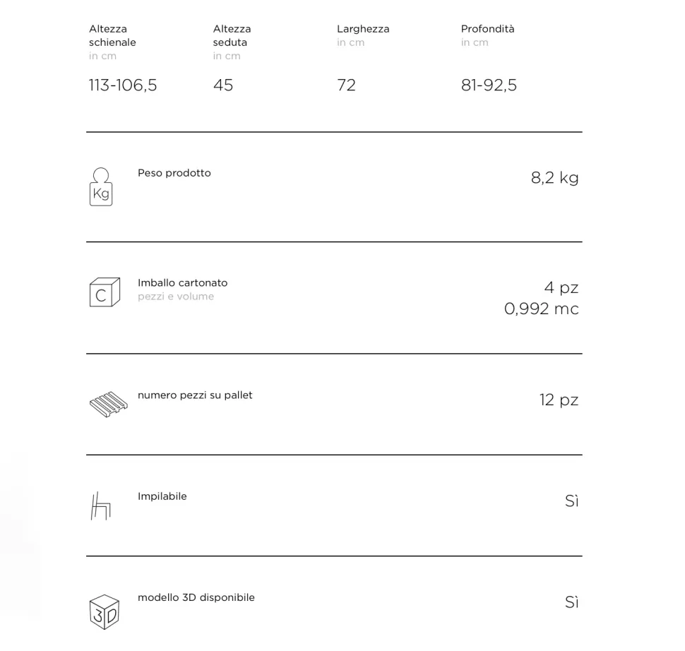 - È disponibile un cuscino per questa sedia?Il cuscino comfort è disponibile su ordinazione. Contatta Tiano Arredamenti per avere dettagli sulla personalizzazione.