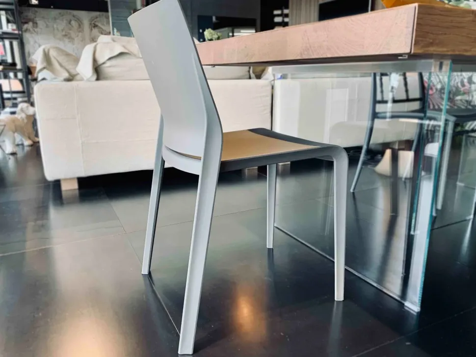 Le sedie, nate per utilizzo indoor, sono adatte anche per uso esterno in quanto il polipropilene è stabilizzato anti UV, anche se, in ambiente completamente esposto al sole, è possibile una lieve alterazione cromatica nel tempo.