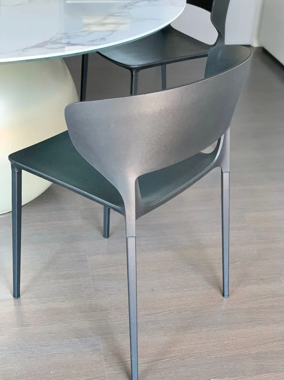 Sedia Impilabile di Desalto modello Koki realizzata in poliuretano integrale verniciato in stampo, struttura interna in acciaio. Gambe in acciaio conificato a sezione quadrata laccate nel colore della seduta. Colore F39 Nero. Dimensioni: L 55, P 50, H 78 CM. Sedia dal design contemporaneo e innovativo. Una perfetta sintesi tra forma e funzionalità, che colpisce in ogni suo particolare.