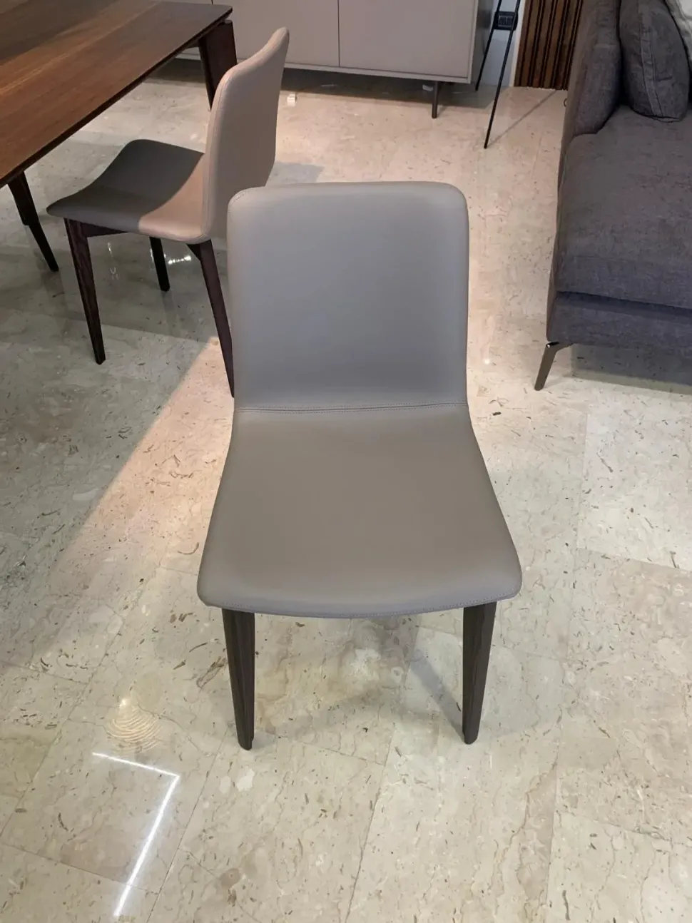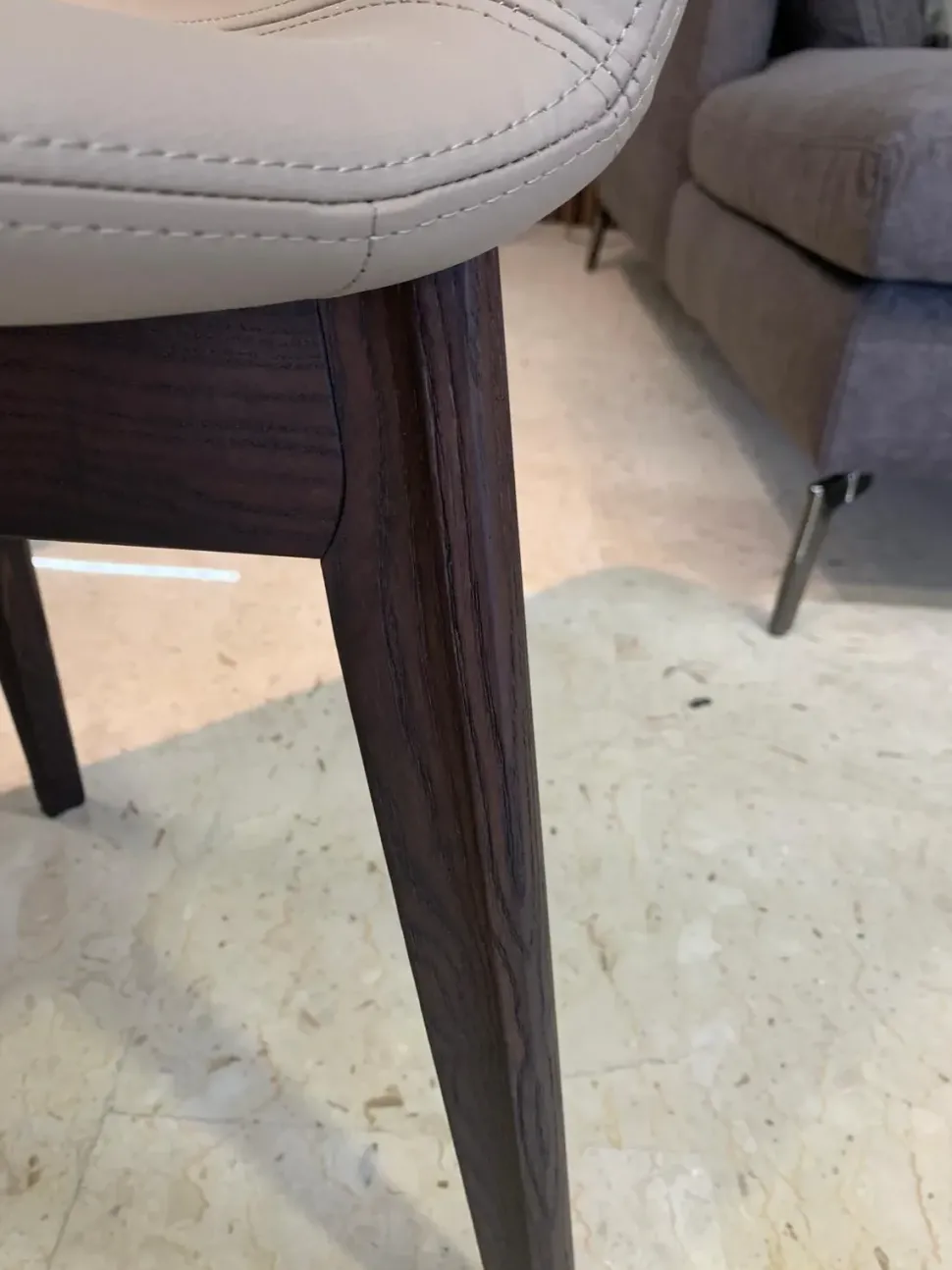 Sedia con struttura in legno e seduta in ecopelle tortora, il prezzo è riferito al kit 4 sedie