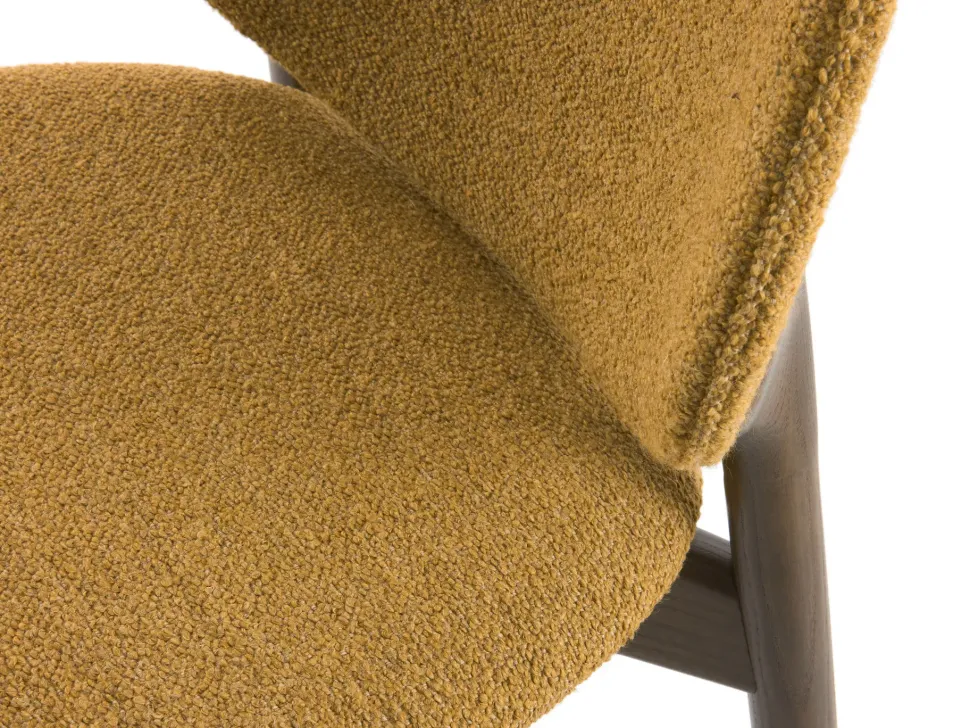 Jewel Outlet è un set di quattro sedie dal design elegante, realizzate in legno di frassino curvato e rivestite in un morbido tessuto bouclè misto lana, caratterizzato da una trama fitta. La loro forma conica si restringe progressivamente verso il basso, mentre le gambe, levigate con maestria da esperti artigiani, risultano lisce e compatte, un dettaglio che si riflette anche nel contro-schienale posteriore, perfettamente integrato nella struttura, creando un affascinante contrasto di colori e finiture. La robusta struttura in legno massello sorregge lo schienale imbottito e il sedile coordinato. Nonostante lo schienale non sia molto alto, le sue linee morbide abbracciano la zona lombare, offrendo un comfort ottimale adattandosi alla forma del corpo. Jewel Outlet è la scelta perfetta per arricchire con stile la zona pranzo di un soggiorno moderno.