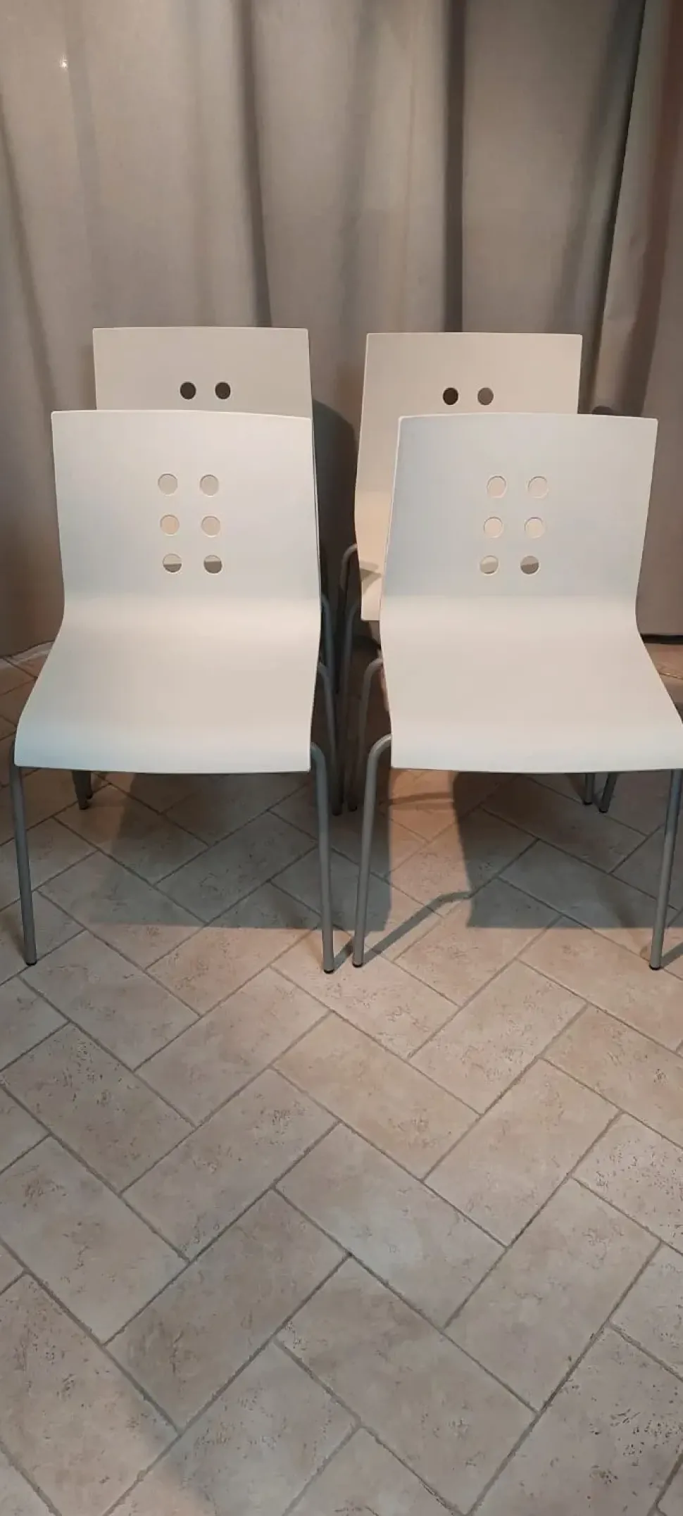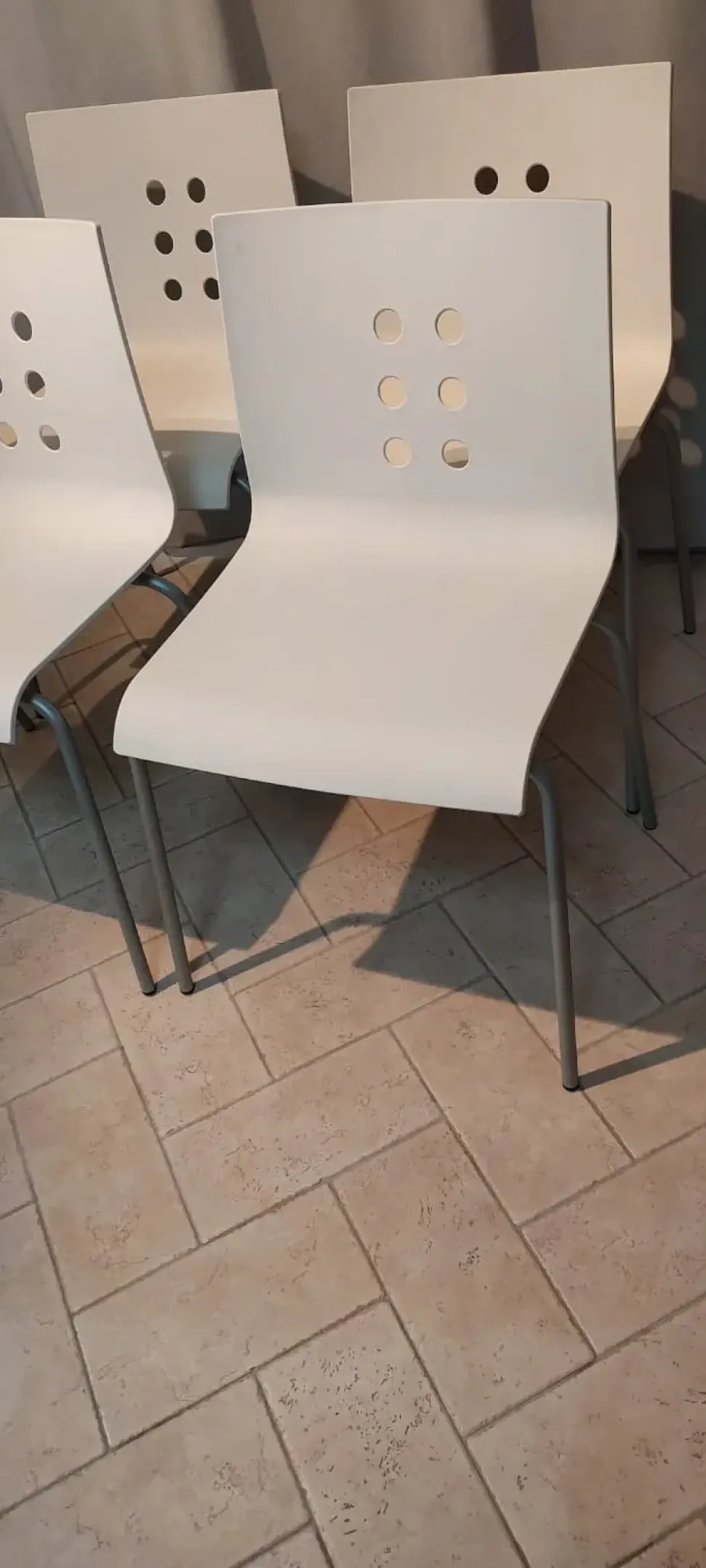 4 sedie in polipropilene bianco con gambe in metallo