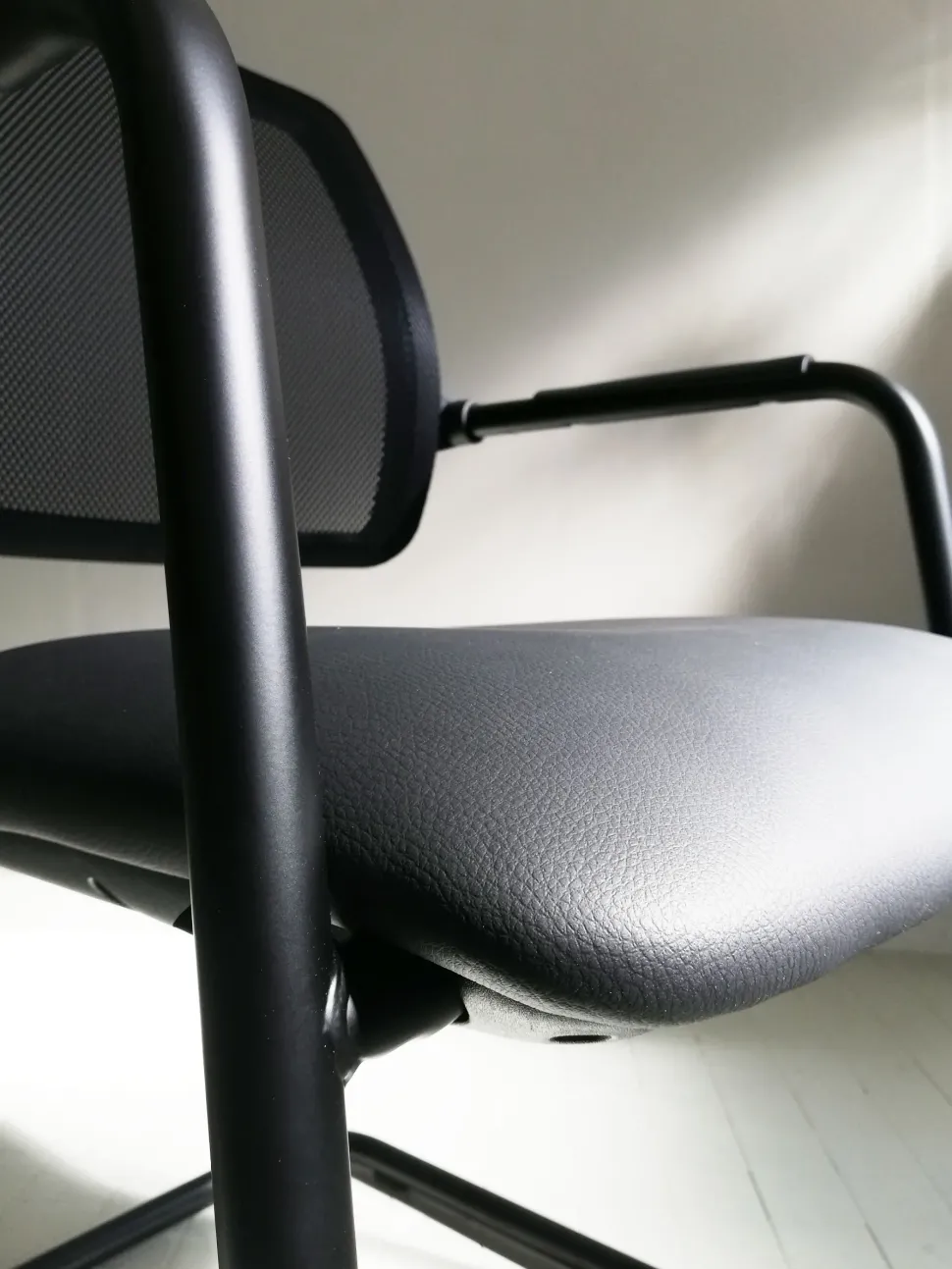 Le sedie visitatore STAR RETE con struttura a slitta nera, schienale in rete e morbida seduta imbottita