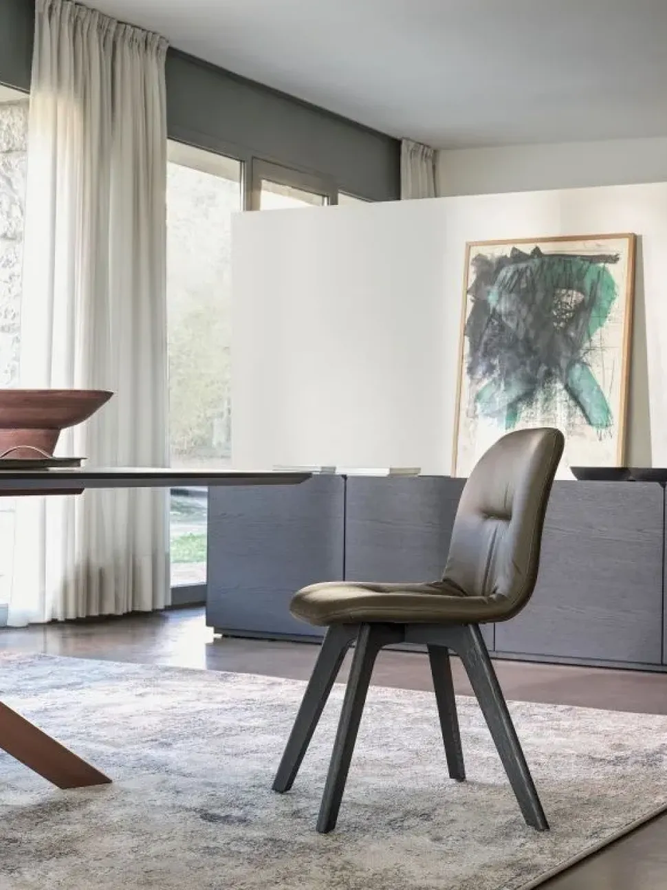 - Il brand ha pensato a un’infinità di modelli di sedie, tutti caratterizzati da un differente tipo di struttura: questaha una struttura con 4 gambe.