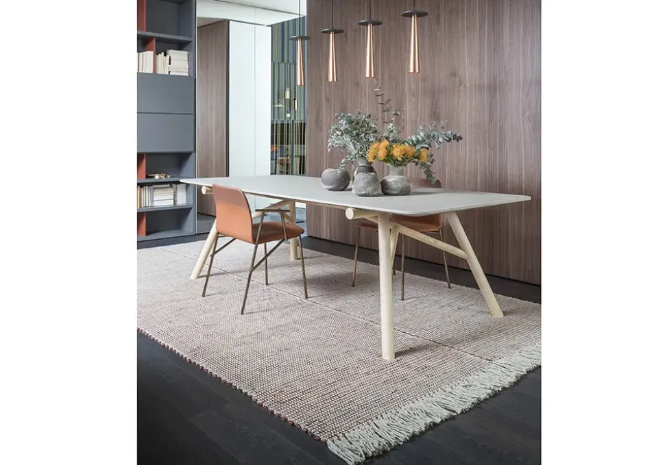 - La struttura con 4 gambe, unita alla seduta, ricrea un forte impatto estetico.