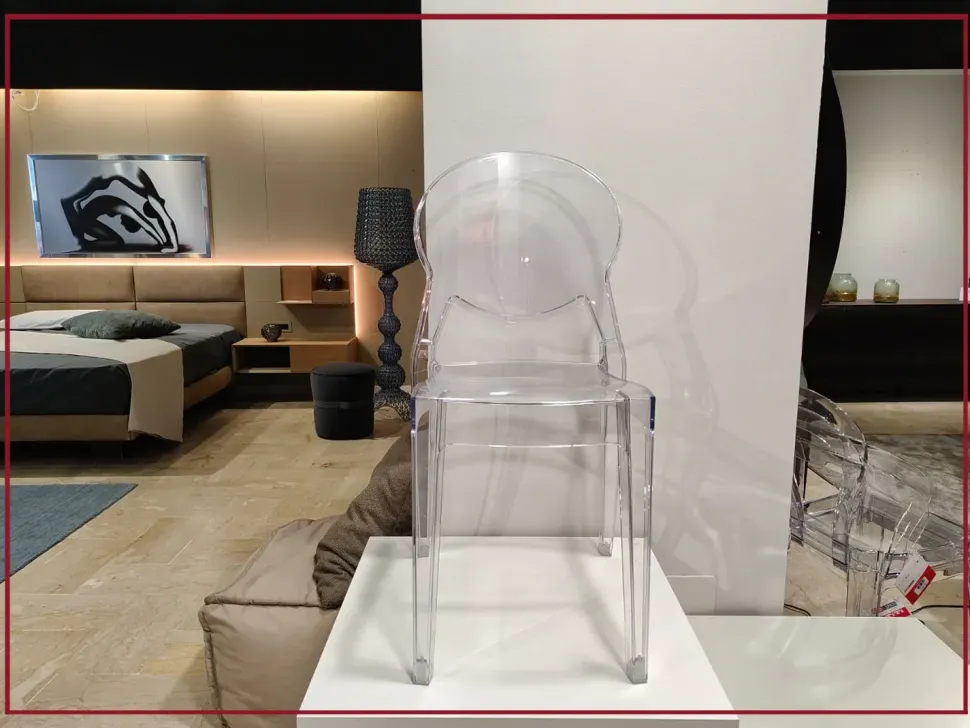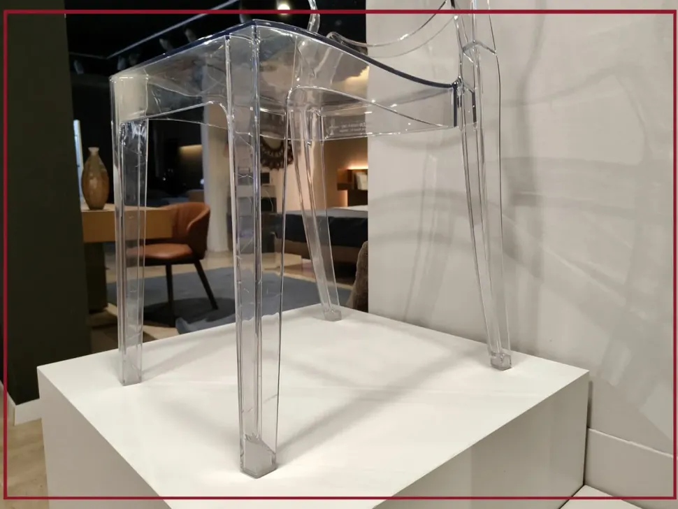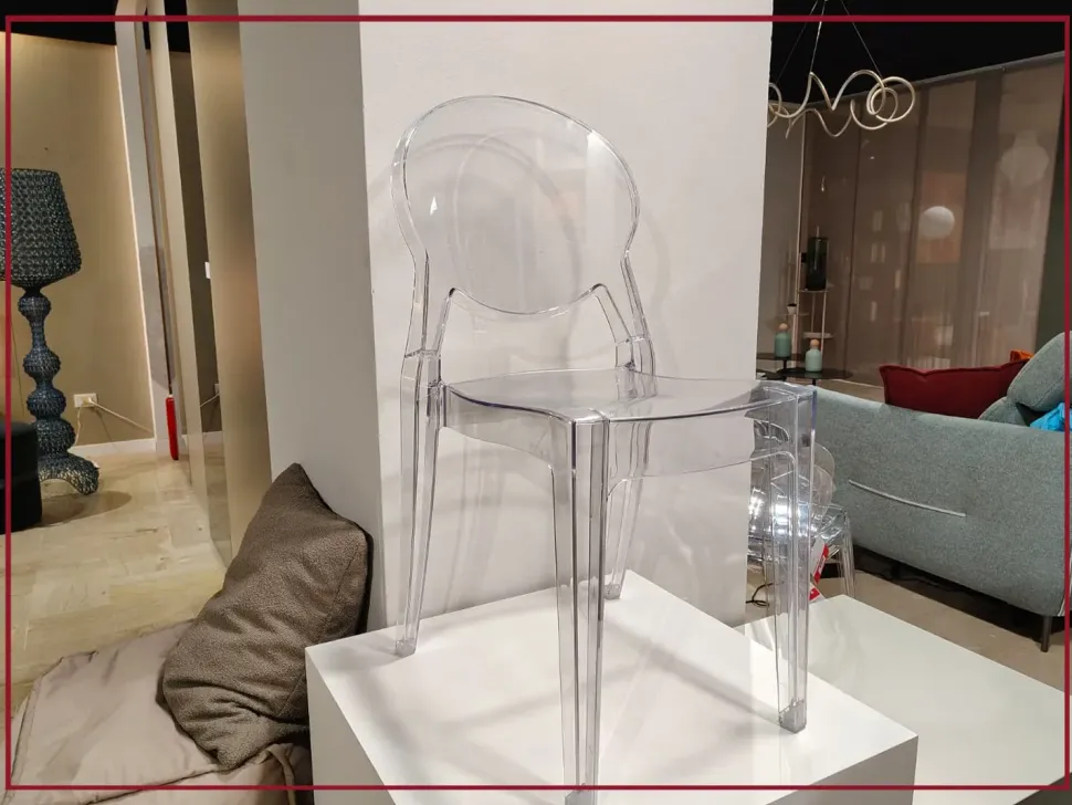 Il suo profilo sinuoso e avvolgente richiama le forme morbide del design scandinavo, mentre il materiale in policarbonato trasparente, le conferisce un aspetto leggero e sofisticato, capace di valorizzare qualsiasi ambiente.