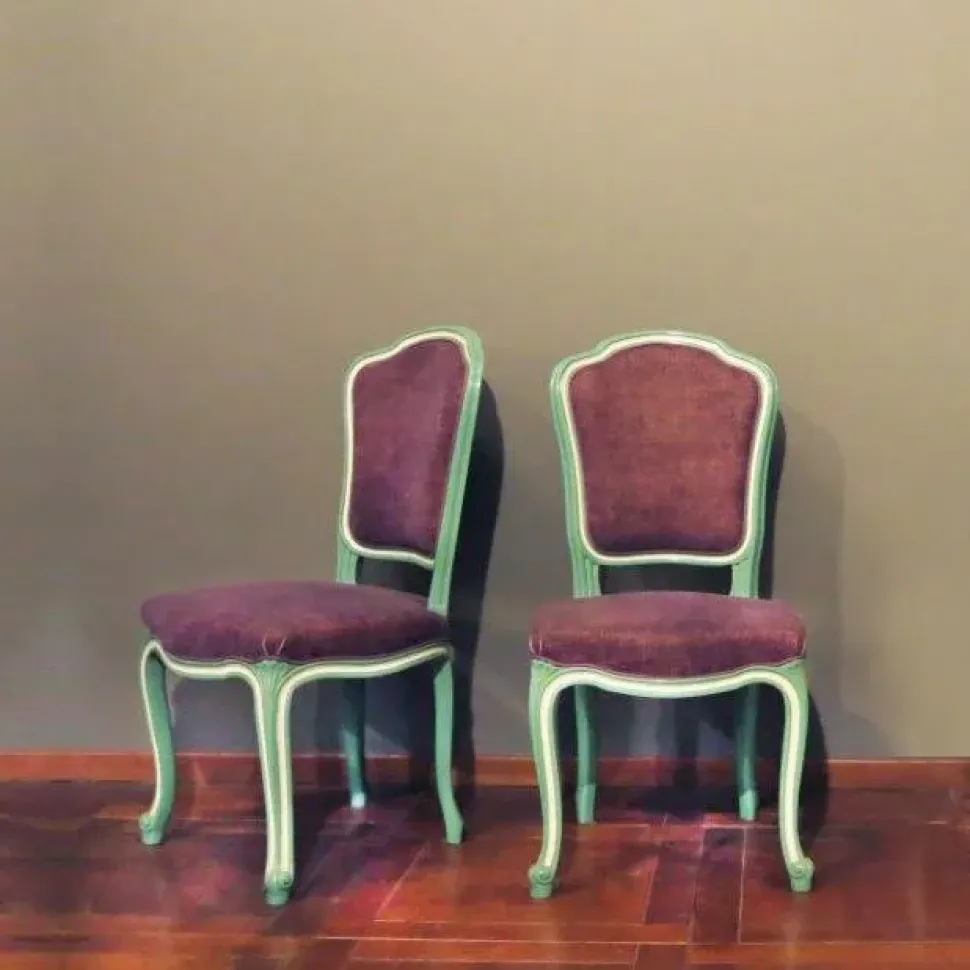 Sedia classica di stile barocco con finitura laccata verde e bianco si adatta perfettamente in una residenza elegante.