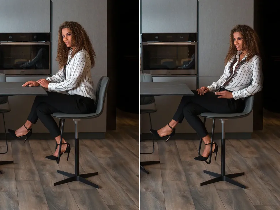 Adatti sia al piano cucina che al piano snack-bar grazie al pistone a gas che consente la regolazione dell’altezza.