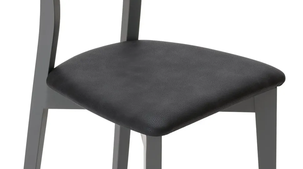 Disponibile in finitura laccato Antracite o finitura legno con sedile laccato Antracite su MDF o imbottito con i vari tessuti.