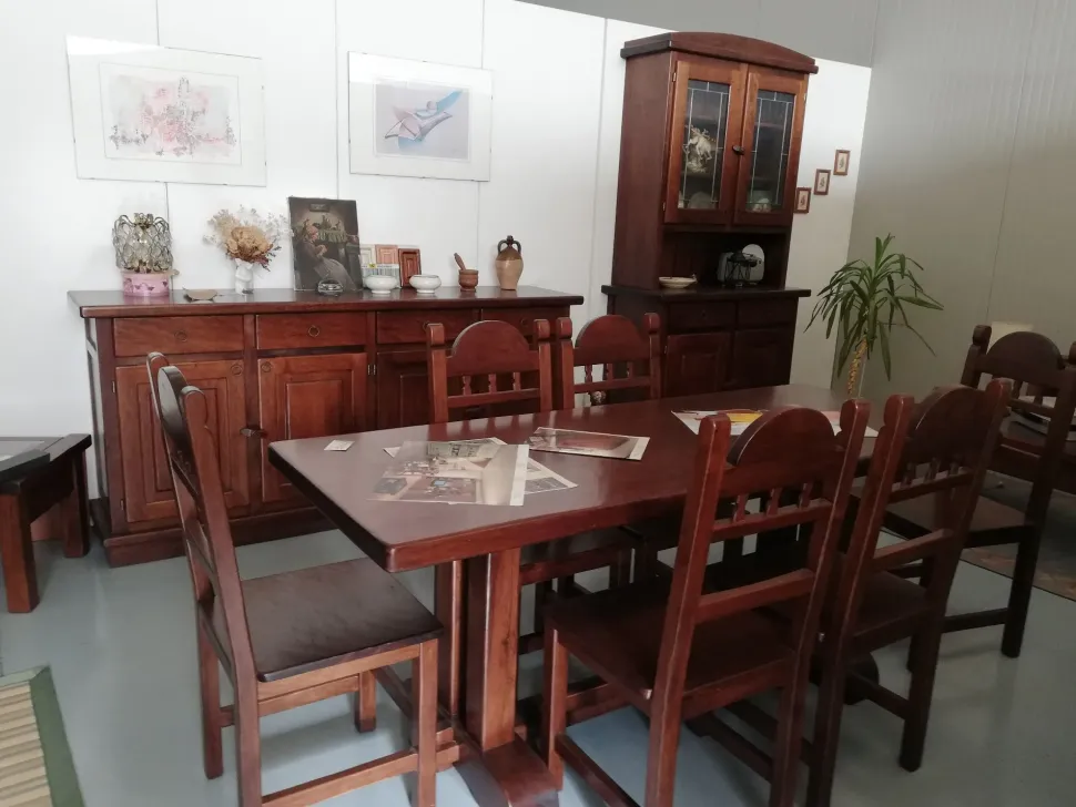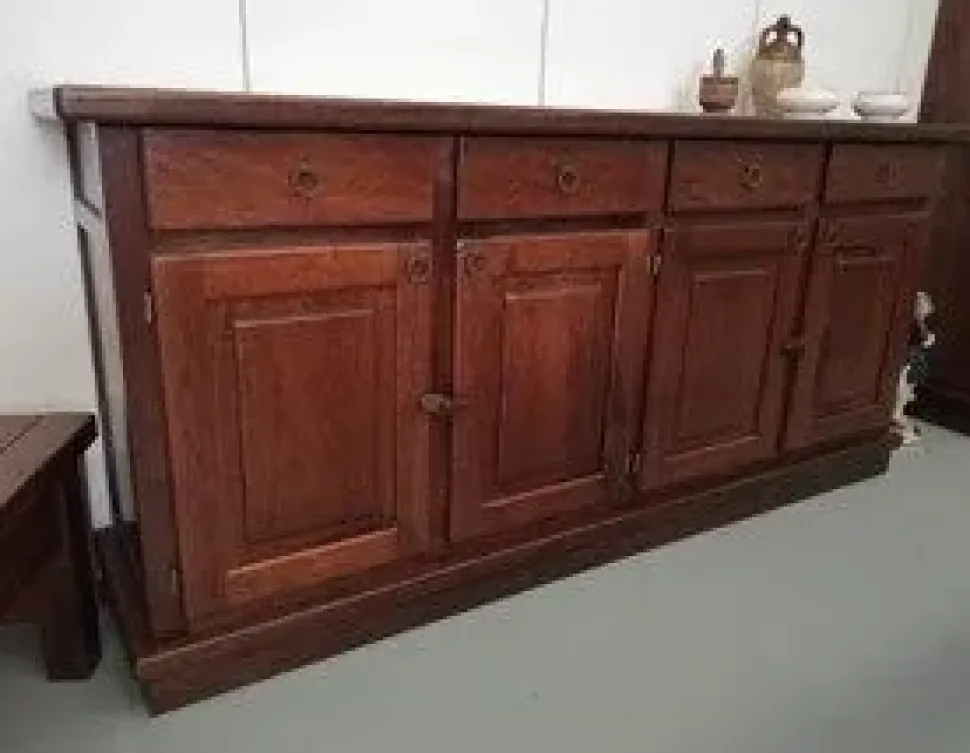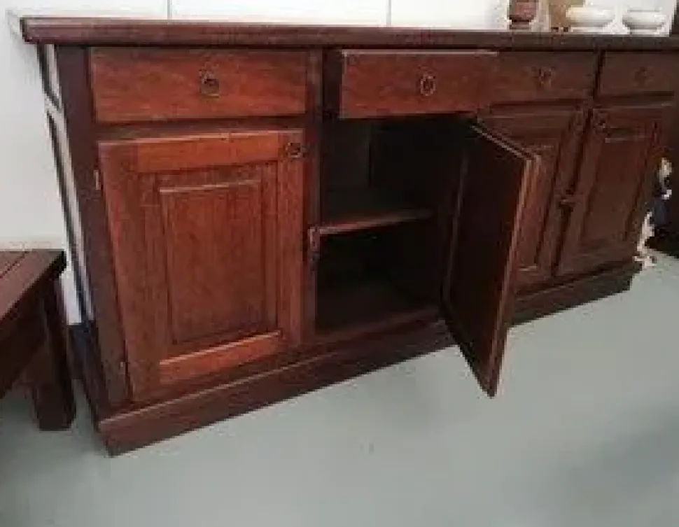 Uno stile sempre attuale con i mobili di ” LINEA IN ARREDAMENTI ” in “ vero legno massello Tulipier e la lavorazione artigianale con la piallatura a mano. E’ possibile completare l’arredo con vetrina, tavolo rettangolare, sedie (v. foto) con prezzi Outlet scontati Dello stesso stile e con la stessa lavorazione sono disponibili sempre con prezzi Outlet scontati: – tavoli, sedie,tavolini, carrello porta vivande, cassapanca contenitore, settimanale. Scheda informativa del prodotto e caratteristiche principali Base credenza a 4 porte – struttura/ante in legno massello frakè, finitura noce antico – schienali e fondo cassetti in legno multistrati cm 1 – ripiani interni in legno massello – ante con maniglie ad anello in ottone anticato impreziosite dal particolare in legno – top sp. cm 4,5 con piallatura a mano – misure: L. cm 209 x P. 50 x H. 97