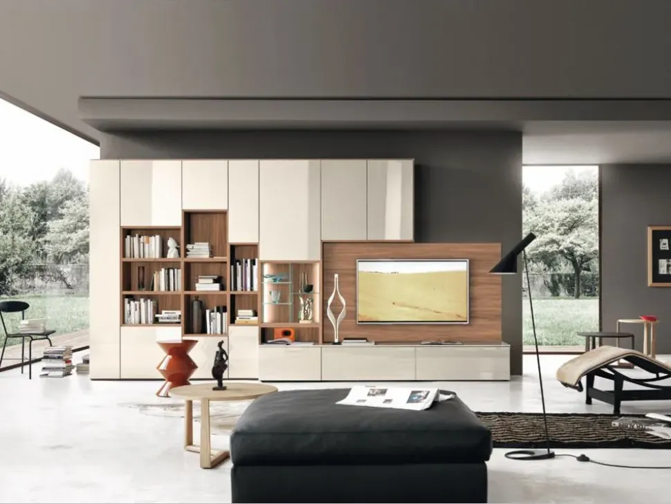 Dai forma al tuo soggiorno con una ampio composizione completa di tutto, in grado di assicurarti tutta la praticità di un mobile a terra.