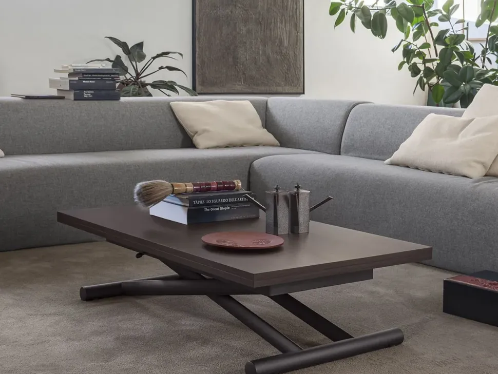 Tavolino trasformabile in tavolo da pranzo.