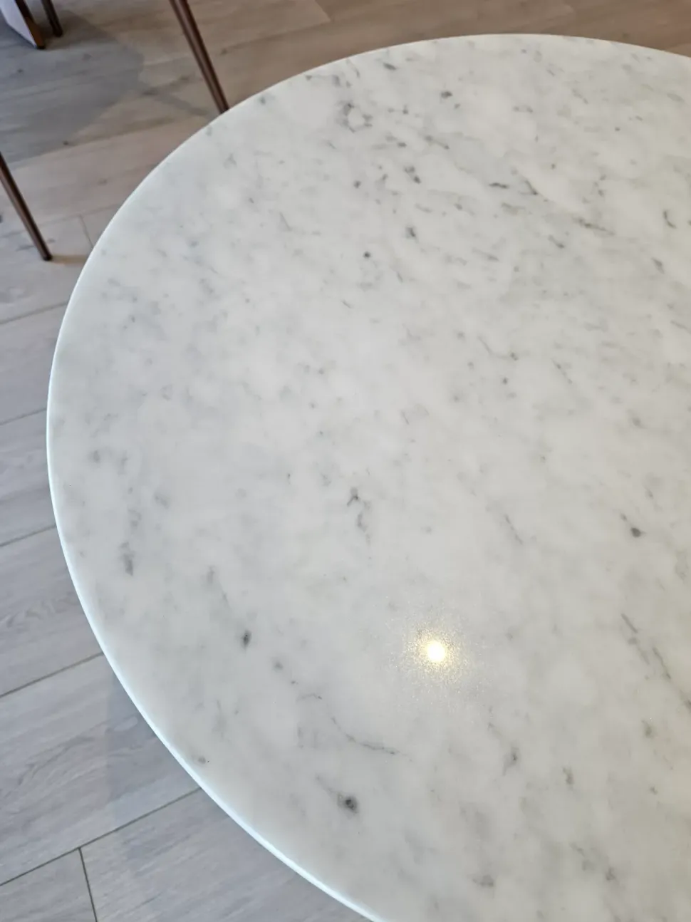- Il piano è Rotondo, in Marmo Bianco di Carrara.