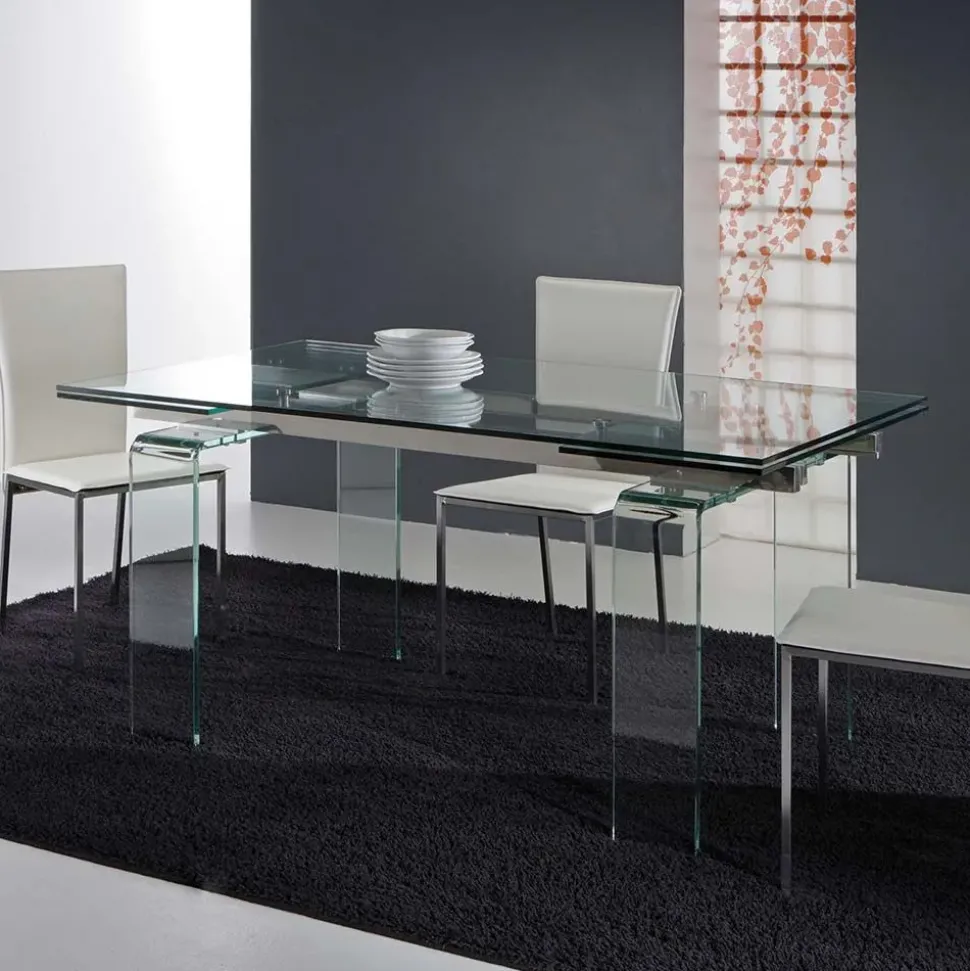 - 1. Il tavolo La Seggiola Modello 676 è un tavolo allungabile di forma rettangolare con un piano in vetro di alta qualità e un basamento a quattro gambe.