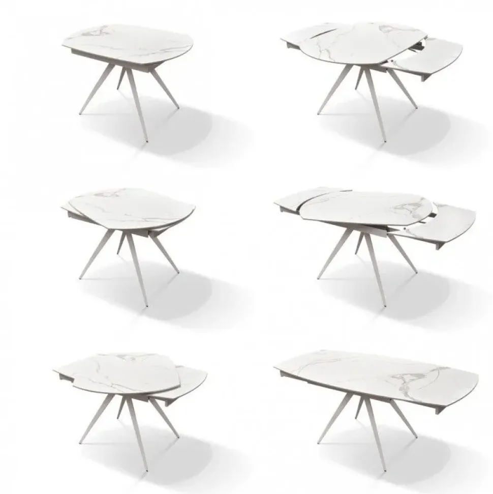- Materiale piano in ceramica: Il piano in ceramica non solo conferisce al tavolo un aspetto raffinato, ma è anche estremamente resistente e facile da pulire, garantendo una lunga durata nel tempo.