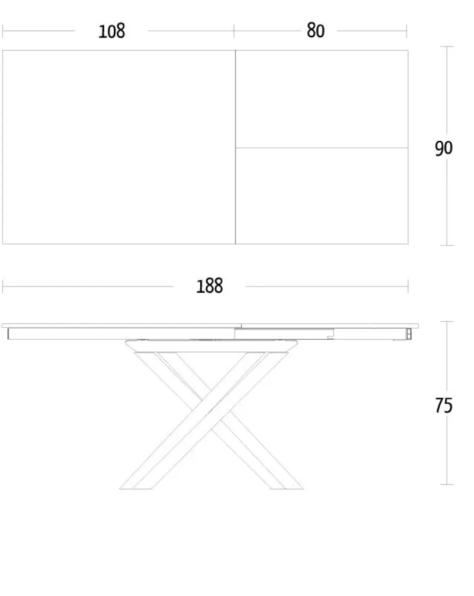 Dimensioni: 108×90 cm estensibile a 188 cm.