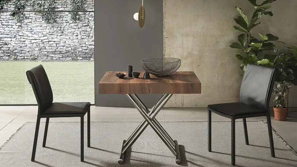 Nel dining o nel living, la scelta dei tavoli dipende dallo spazio libero: la indicazione generale prevede che ci sia lo spazio necessario per muoversi con libertà nell’area fra il tavolo e l’eventuale parete retrostante; la scelta dei tavoli, quindi anche questo modello Calypso scontato, dipende dallo stile dell’ambiente e dell’arredamento già presente.
