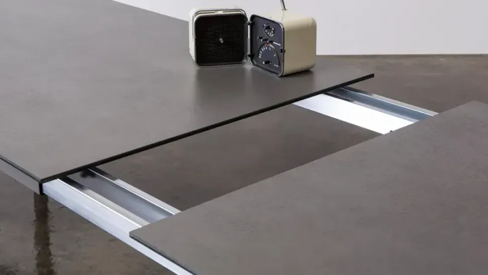 - Il prezzo esposto è per il tavolo come in foto di cm 160×90 allungabile 210/260 con finiture a scelta, piano in nobilitato e basamento in metallo M1.