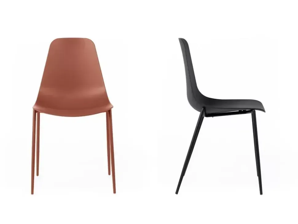 Il prezzo è comprensivo di 4 sedie in metallo in tinta e scocca in polipropilene, le cui finiture sono Grigio Scuro oppure Rosso Ruggine.